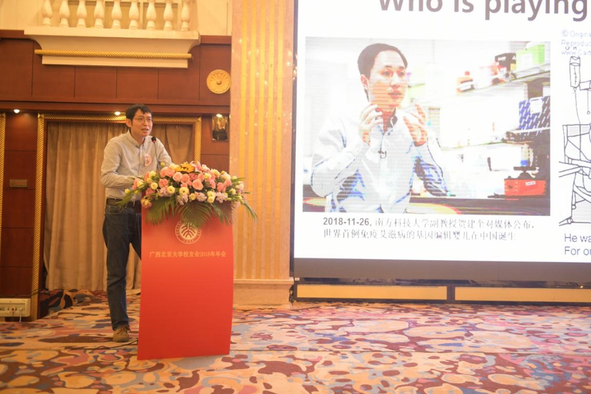 第二个议程为优秀校友的主题演讲。广西北京大学校友会知名校友、广西医科大学附一医院教授彭涛,结合他个人作为一名外科医生的经历,分享了他对医学前沿领域的一些思考,为广大校友做了精彩的演讲报告,演讲幽默风趣、深入浅出,为广大校友呈现了一场知识分享的盛宴。