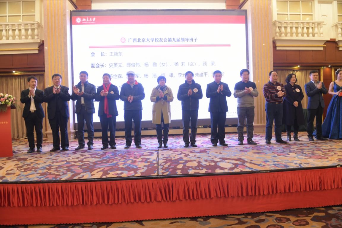 之后,新一届选举产生的广西北大校友会第九届领导班子集体亮相,与广大校友见面。广西北大校友会第九届理事会会长王筱东代表新一届理事会致辞,并表示将继续秉承校友会的宗旨,为联系和服务每一位校友而努力。