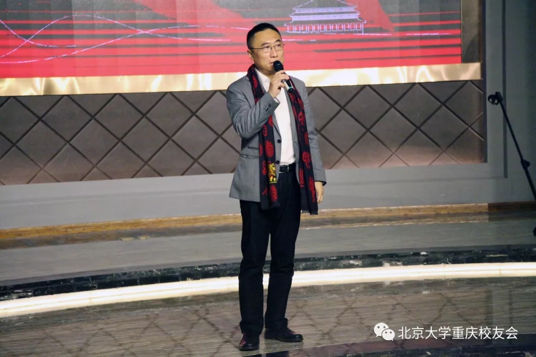 北京大学重庆校友会会长许为珉发表了讲话。他说,2018年,北大重庆校友会团结广大校友,围绕庆祝母校建校120周年、会长换届、服务社会、分支活动、联系校友等方面开展工作,取得显著成效。许会长表示,2019年,校友会将在前任会长打下的坚实基础上,凝聚校友力量,争取更大作为。校友会的凝聚力首先来自“北大精神”。“北大精神”是北大重庆校友会的灵魂,兼容并包、思想自由、肩负责任、守正创新,这种精神的传承把我们紧紧团结在一起。新老校友“传帮带”,我们校友会的队伍会越来越壮大!Life is like a box of chocolates,you never know what you're gonna get。人生离不开梦想,追逐梦想的路上离不开伙伴。许会长祝全体校友新年快乐!并向参与本次校友年会的策划、组织、表演和服务的校友们表示感谢。