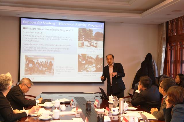 日本东京大学校友工作办公室主任岛田久弥向与会成员介绍了东京大学校友会的校友数据管理和校友在线社区UTokyo的理念与愿景。他提出校友会应该在知识协作和人才培养层面通过开展多途径的实践活动,扩大校友对母校和在校学生的支持。