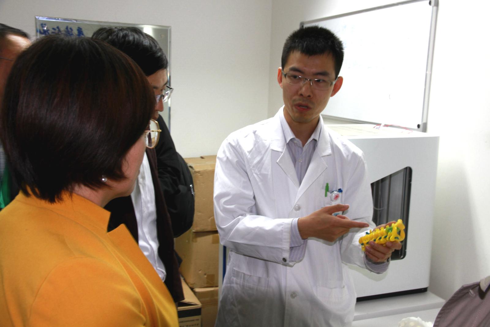 随后来到外科楼骨科 3D 打印室,听取北医三院骨科赵旻暐和李梓赫医师介绍3D打印技术。
