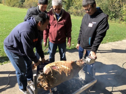 当天活动的亮点之一,是校友会准备的烧烤主料——来自穆斯林老店的鲜羊。凭借校友会在芝加哥地区烧烤界的强大势力,本次活动聚集了几位“烤神”校友助阵。“烤神”大展身手,轮流掌烤。偌大的公园里香气四溢,伴随着充满活力的音乐,校友们均兴高采烈。