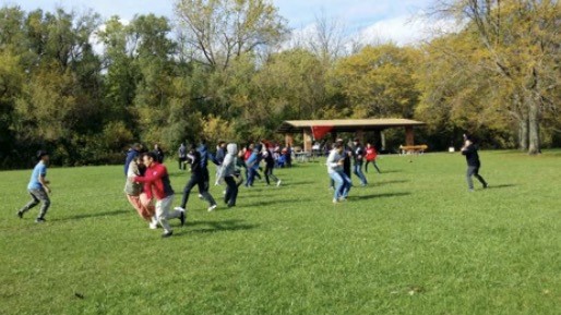 虽然10月13号是个艳阳天,但是温度比常规还是低了很多,最高只有6摄氏度。为此,校友会贴心地准备了两个大火盆。校友们充分发挥了亦文亦武、能吃能玩的特质,或携烤羊而论道,或于球场挥汗,志趣盎然。