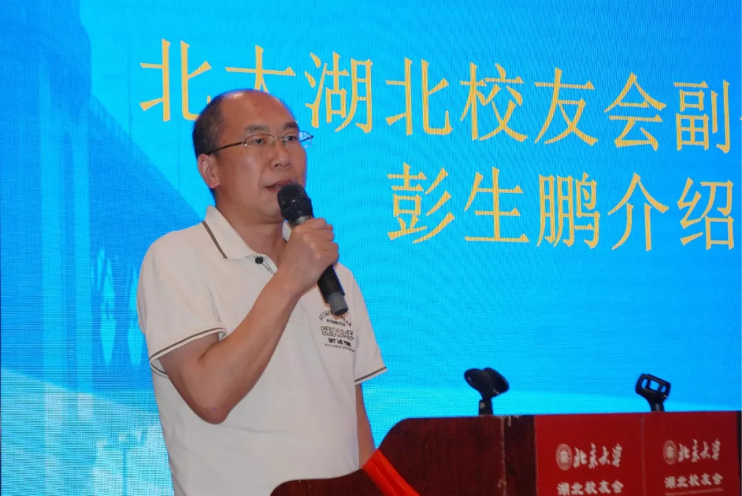 校友会副会长兼秘书长彭生鹏介绍了校友会的发展历史和组织架构情况,讲述了北京大学湖北校友会从无到有和从小到大过程,他特别指出了2013年校友会正式在湖北省民政厅注册后,在刘萌校友担任会长后,校友会进入了规范和快速发展的新时代,建立健全了二级组织河各项规章制度,严格按照章程行事和民主议事。彭生鹏秘书长最后说到,校友会不仅为大家建立共同家园,服务校友接地线,而且能连接北大和湖北两个天线。