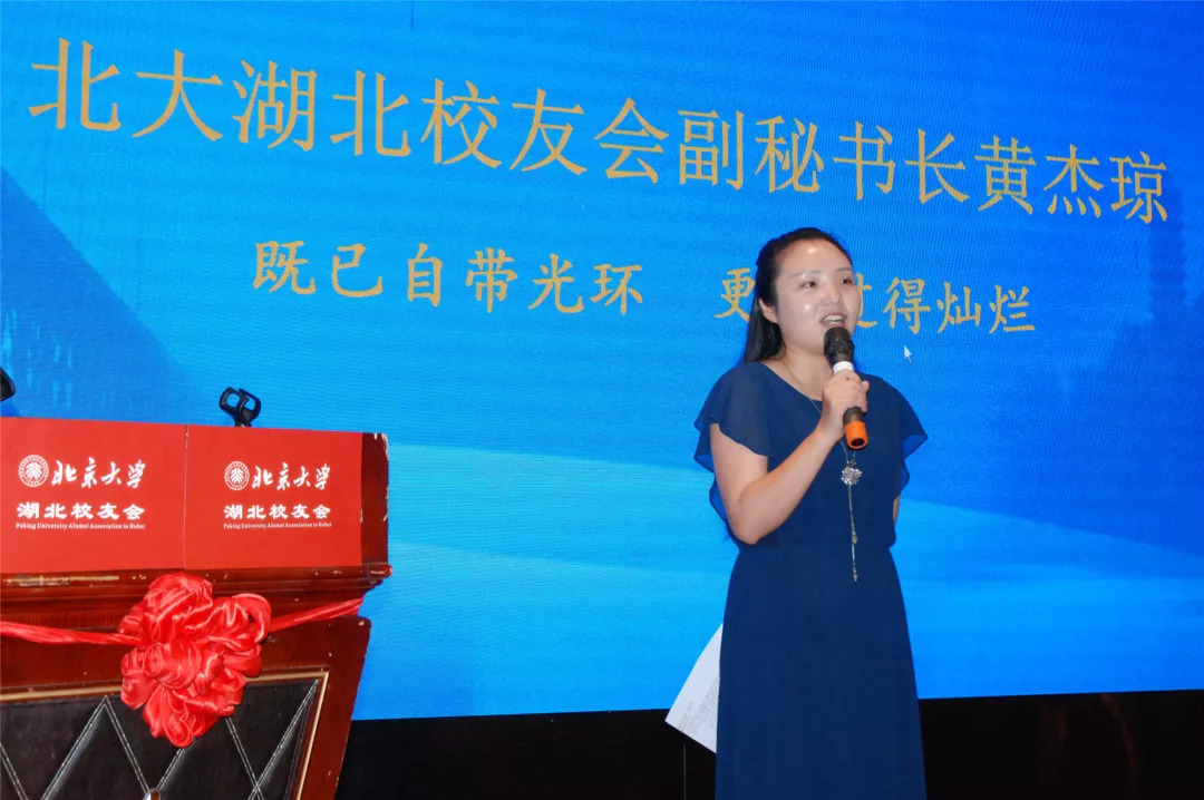 最后,校友会副秘书长黄杰琼用真挚和饱满的情感,以< <既已自带光环,更要过得灿烂>>为题目,分享了进入燕园学习和来汉工作七年的所思所得,引起了现场阵阵掌声与共鸣。在她看来,武汉是一座“春天有樱花、夏天有龙虾、秋天有螃蟹、冬天还有藕汤配藕夹”的城市,她深有体会地说,武汉每年必通一条或两条交通要道,让所有到过这座城市的人都感受到了什么叫武汉速度,现在有越来越多的城市名片想介绍给外地来宾,也让生活在这里的我们深刻的体会到什么是“Wuhan is different every day”;我去过湖北的每一个地市、省直管县、包括神农架林区,也从这里飞往过国内几乎所有的一线城市,深切地感受过什么是九省通衢。她最后说,让我们带着北大的光环,或在湖光塔影的燕园,或在日新月异的荆楚,绽放属于自己的灿烂吧!