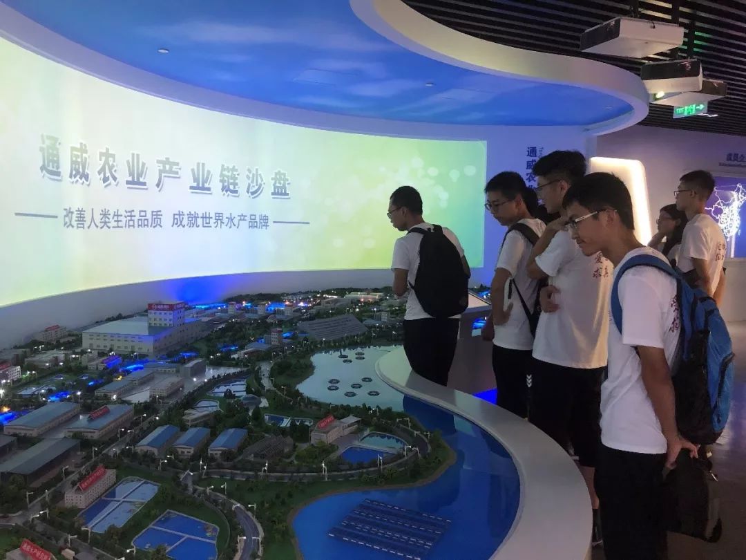 在通威集团,拓展团通过沙盘、环幕影院、3D电影等方式,对通威集团的发展历程、产业结构、社会责任等进行了解。