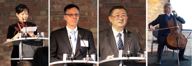 在欣赏完德国著名大提琴演者佩特森精彩的演出后,中德创新论坛开始。此次活动的主要赞助商、北大校友、智能电动汽车蔚来汽车公司的创始人及董事 长、CEO 李斌先生为大家讲述了自己的创业史和创业感触。他说:“创业是人生的选择和一种生活方式,是一个设立目标、实现目标和验证自己、打败人生的过程。”