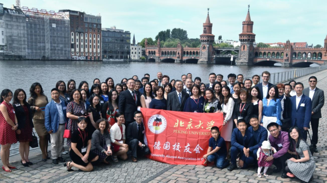 国内外校友欢聚在北大 120 周年德国庆典牌前