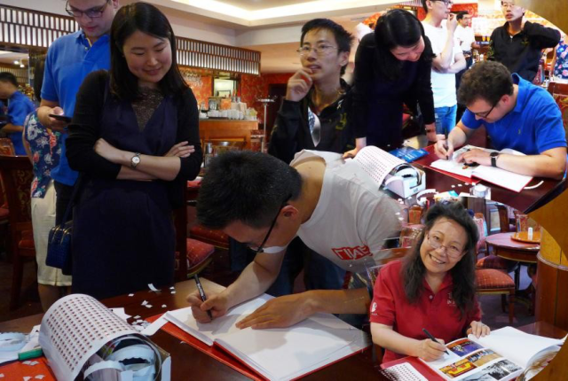随后开始北大 120 周年校庆德国站庆典的重要部分,北大德国校友会会长于芳和理事会理事申柳华、王燕、徐文、袁苑、霍严和荣誉会长顾裕华一起向北京大学前副校长、北大校友会常务副会长王杰和北大校友会副秘书长张向英赠送了一份特殊的礼物 一本精心制作的留言簿:为了能最好的传达校友对母校的情感,在德北大校友每人一页各自签名。校友们纷纷找出多年前自己在北大读书时和来德国后学习工作的照片贴上,认真留言、衷心祝福母校。