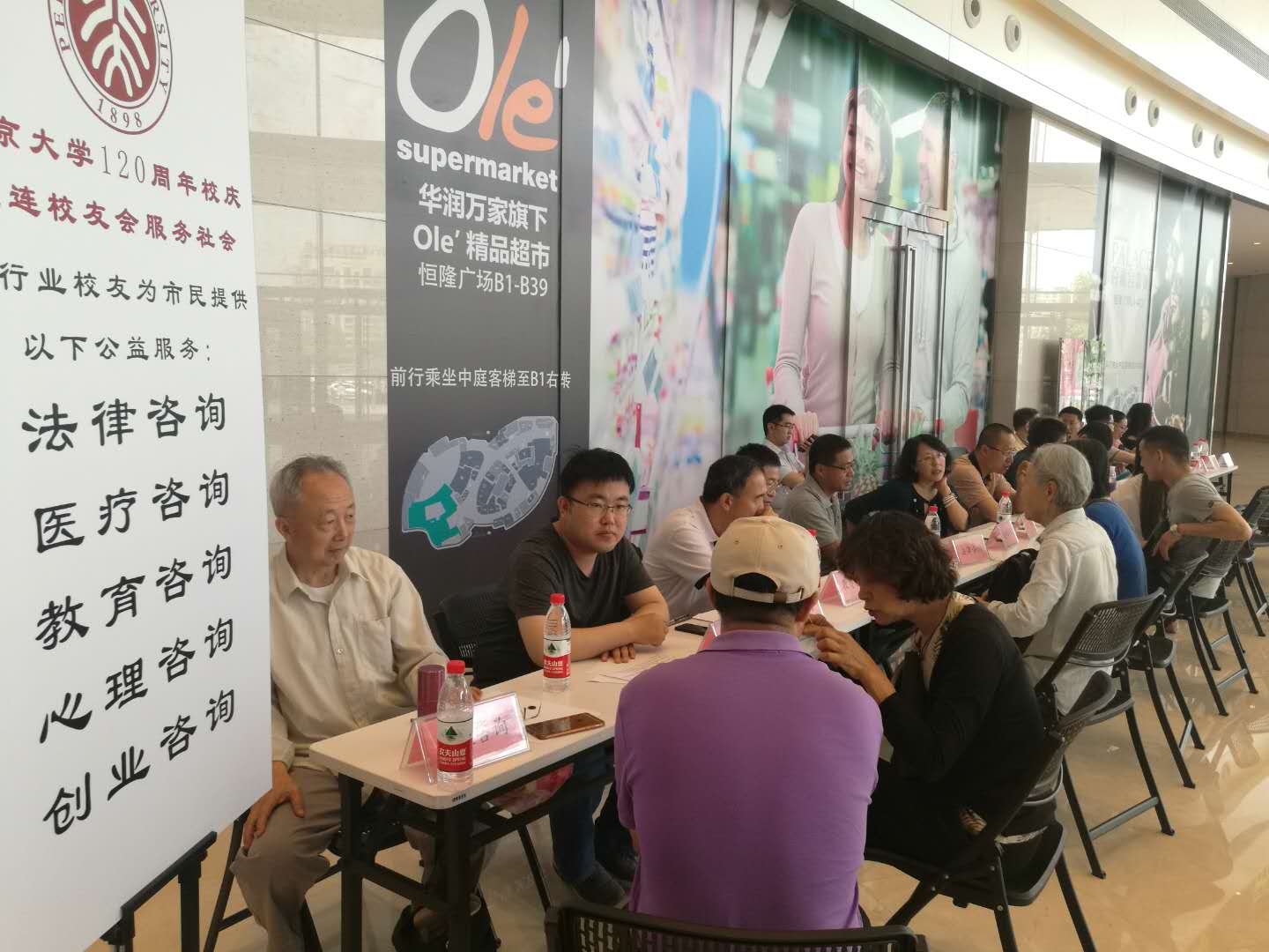 今年是北京大学建校120周年,为庆祝母校华诞,大连市北京大学校友会举办了系列活动。为了体现服务社会的宗旨,校友会组织了 20位校友在恒隆广场面向社会开展了义务咨询活动。6月初郭世涛会长、李雪梅秘书长、董学滨副秘书长多次讨论、修改活动方案,并到现场看场地。活动得到了大连市西岗区白云街道和大连市恒隆广场有限公司的大力支持,取得了良好的社会效果。