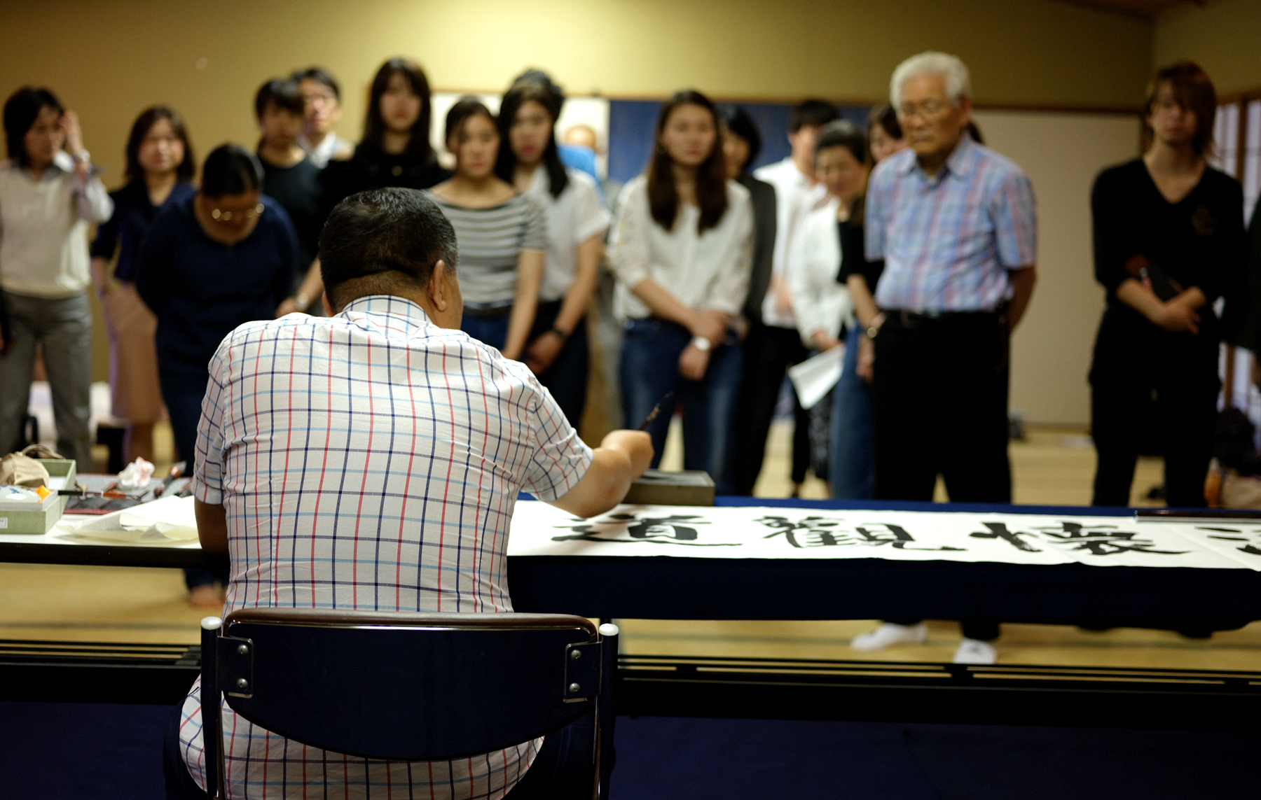 早稻田大学国际部领导参观展览并与北京大学书法专科代表团成员合影