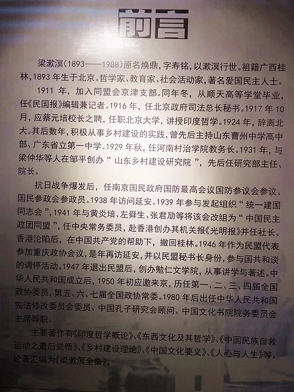 今年是梁漱溟先生逝世三十周年,这次梁漱溟先生生平图片展的意义,正是在于通过对梁漱溟先生的缅怀和纪念,让我们继承梁漱溟先生留下的宝贵的精神财富,努力建设一个更好的世界。