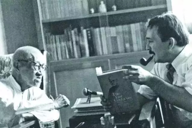 图为晚年梁漱溟与美国芝加哥大学教授、《最后的儒家》作者艾恺谈话留影。