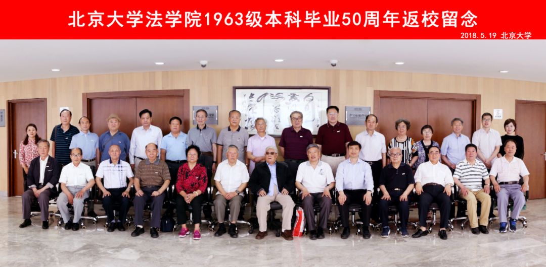 2018年5月19日上午,北京大学法学院1963级本科毕业50周年返校活动在法学院凯原楼308会议室顺利举行,阔别学校50周年的校友们重又回到熟悉的校园,一同追忆青葱岁月,共叙深深同学情。北京大学法学院院长张守文,党委书记潘剑锋,党委副书记路姜男,法学院张文老师、张玉镶老师,校友工作办公室党淑平主任、副主任鲁昕鑫共同参加了本次活动。活动由63级校友艾才国主持。