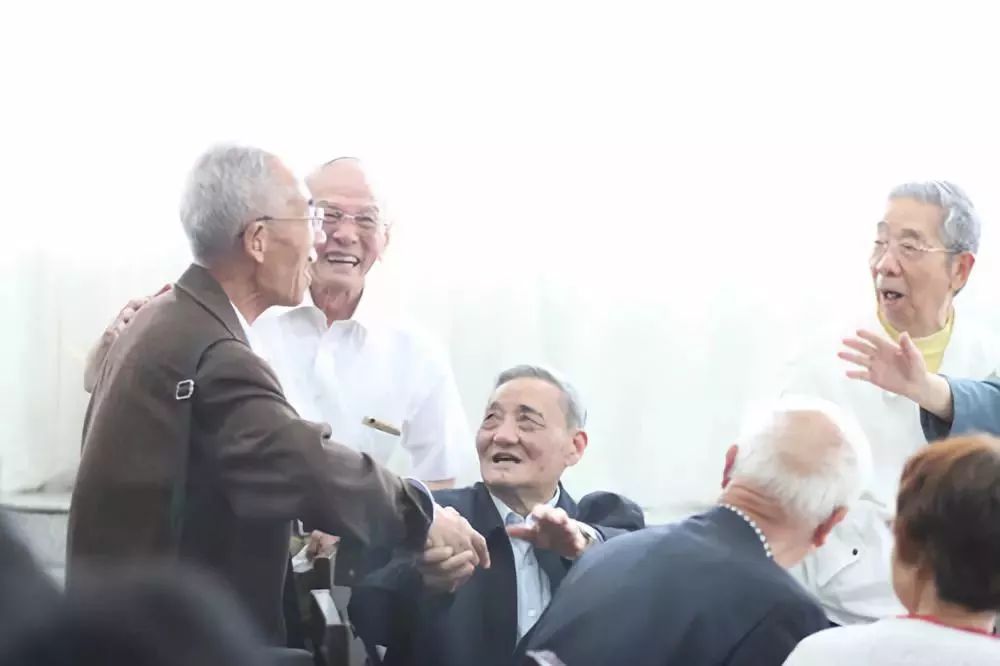 下午两点,307会议室因为校友们的回归而显得格外热烈、温馨。人活七十古来稀,而归校的十六位校友中,最大的已经八十六岁,最小的也已经八十岁了。校友们大多身体硬朗,但也有人是由家人推着轮椅来赴同窗之情、母校之约。
