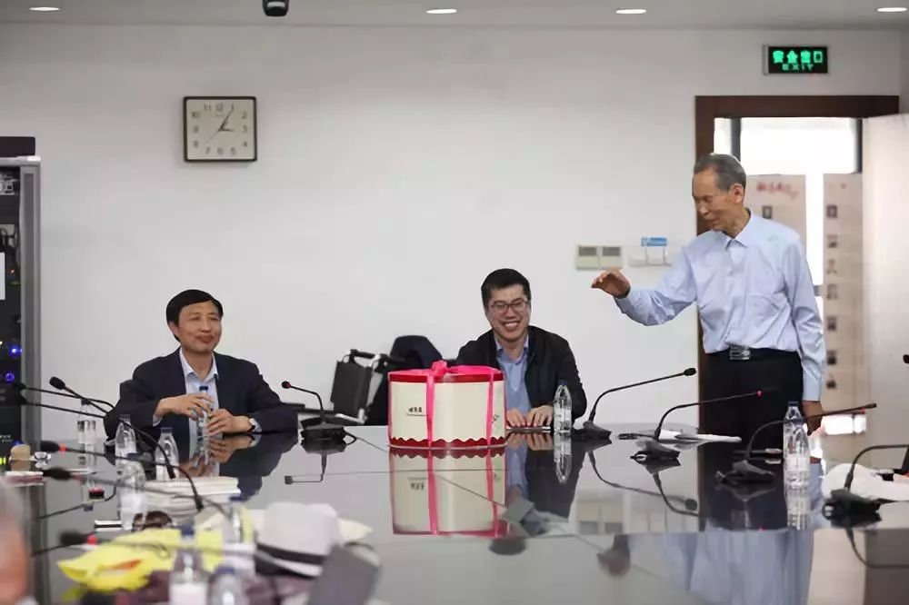 为了表达对学院的祝福,校友代表向北大法学院赠送了“传授治国理政知识,铭记母校恩师情深”的墨宝。同时,恰逢归校的七位校友八十华诞,学院特地为寿星们准备了蛋糕,张守文院长代表学院对寿星们致以真挚的生日祝福。返校活动联系人高德原老师介绍了此次校友返校的联系情况,并对学院周到细心的安排表示由衷的感谢。