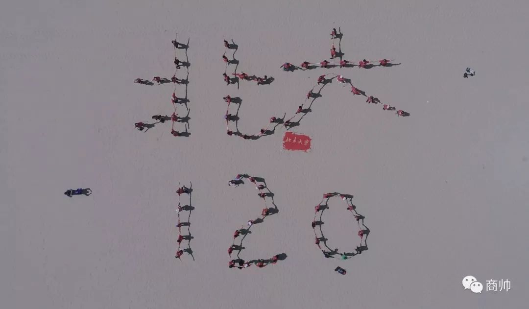 由无人机拍摄的北大120周年字样