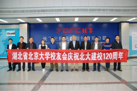 北大校友不仅在湖北政学界人才辈出,在企业界也藏龙卧虎,为湖北社会经济发展做出并继续做出着贡献。在北大双甲子校庆前夕的2018年4月25日,北大湖北校友会“荆楚校友行”第十站来到了中国产品规格最齐备、生产技术最先进、生产规模最大的光纤光缆产品以及制造装备的研发和生产基地----长飞光纤光缆股份有限公司,走访了该公司副总裁闫长鹍校友,得到了校友们的积极参与和欢迎。