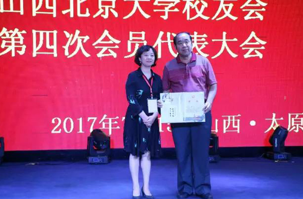 北大校友会副秘书长张向英向范晋生会长颁发证书