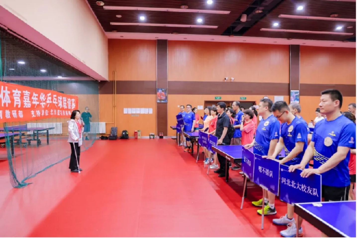 荟聚夏日燕园,竞技国球风采,同叙校友情谊。2024年7月7日上午,北京大学法学院首届校友体育嘉年华乒乓球联谊赛在邱德拔体育馆乒乓球场成功举行。本届赛事由北京大学法学院、北京大学体育教研部主办,比赛特邀北京市大学生体育协会乒乓球分会顾问、国家级裁判李莉卿作为赛事裁判长,来自全国各地的六十余位北大法学院校友及家属参加本次比赛。开幕式由北京大学法学院校友工作办公室主任党淑平主持。