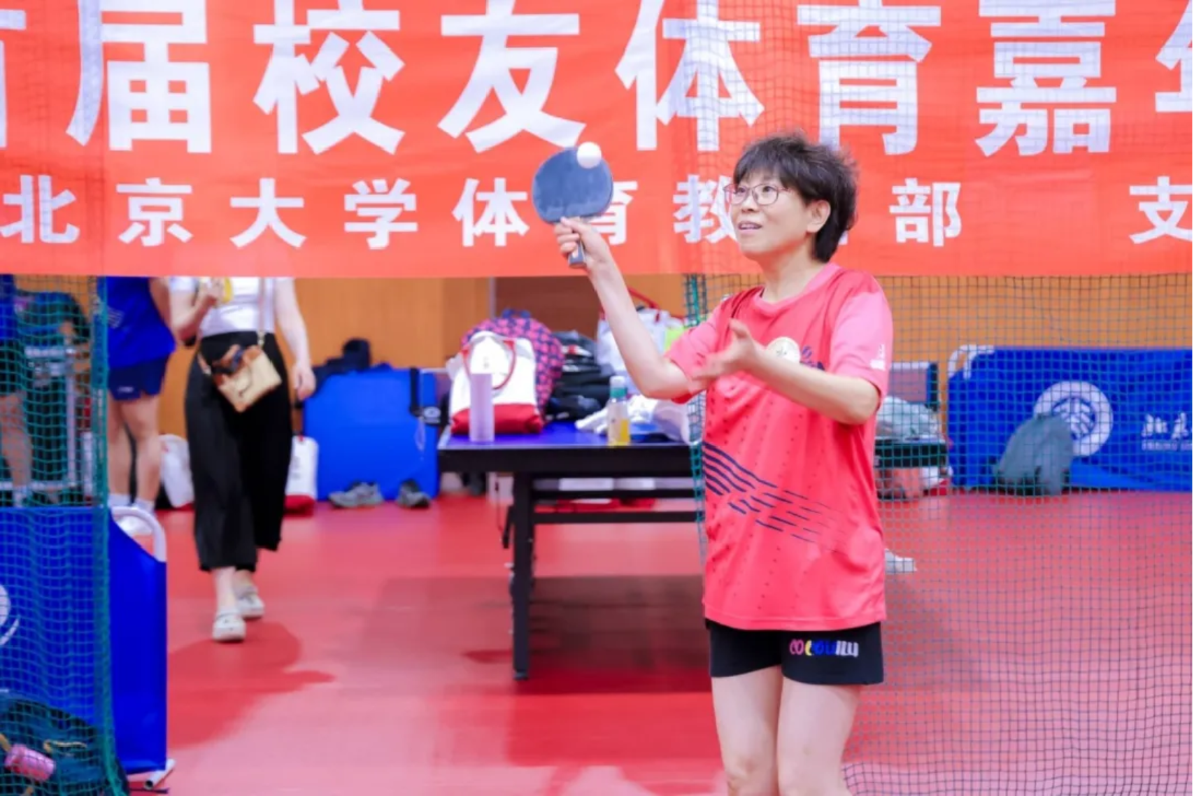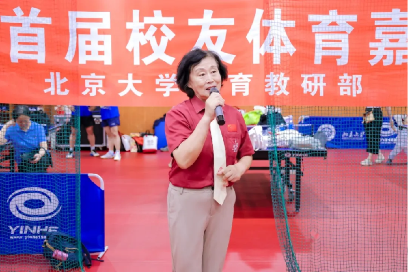 随后,在校友们欢呼声中,北京大学法学院退休教师吴娅岚为本次校友联谊赛开球,正式拉开了比赛序幕。