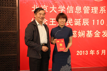 此外,“北京大学信息管理系关懿娴基金”(简称“关懿娴基金”)也于当日正式发布。今年95岁高龄的关懿娴先生,自1956年到北大图书馆学系(现北京大学信息管理系)任教,育人上千,关心教学,是信管系德高望重的老前辈。前不久,她将卖房款的100万元拿出来,成立了关懿娴基金,用于褒奖青年学子。