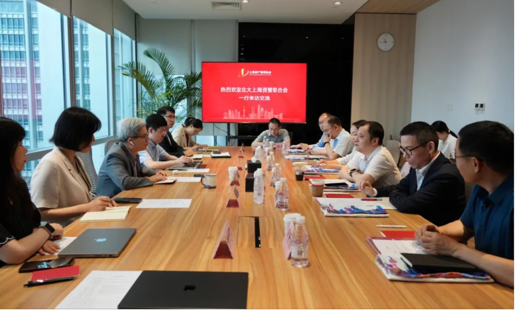上海资产管理协会综合管理部总监田晓峰、国际交流工作部总监左方、数字金融工作部副总监(主持工作)宁晓璐、综合管理部副总监许文丽等参加座谈。北大上海资管联合会秘书长平新苗、副秘书长王兴建、余前广等陪同走访。