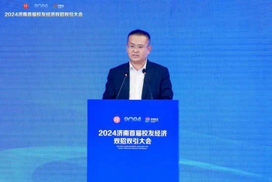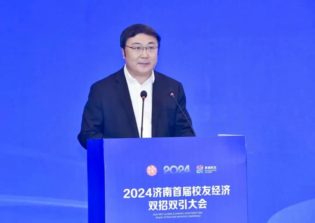 杨峰在致辞中表示,校友经济作为一种独特且充满活力的经济形态,正日益彰显出强大的驱动力和旺盛的生命力。发展壮大校友经济,既寄托着广大校友的拳拳赤子心,也承载着济南这座千年古城的殷殷期盼,更是校友与泉城双向奔赴、互相成就的合作平台。希望广大校友充分利用各自优势和影响,围绕资源共享、价值共创、发展共赢,大力发展校友经济,助推济南经济腾飞跃升;依托泉城得天独厚的资源禀赋和发展优势,创造更多的合作共赢契机,助力广大校友搭乘济南发展快车,实现自我成就与社会贡献的双飞跃、双丰收。济南将坚持“没有最好只有更好”理念,为大家创新创业提供全周期、定制化、一站式综合服务,做大家最坚强的“后盾”和最温暖的“港湾”,让广大校友归来省心、留下安心,发展更有信心。相信此次活动必将对济南“招才引智”、加快强省会建设产生重要的推动作用。