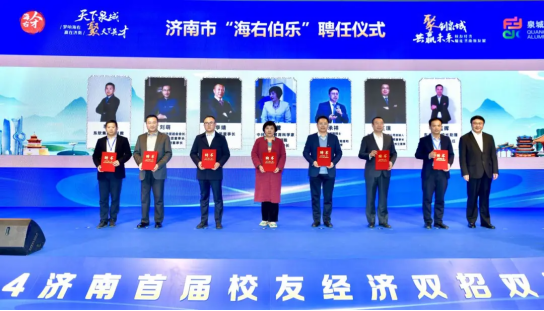 活动现场,为北京大学校友、长江国际控股集团董事长、湖北省北京大学校友会会长刘萌,北大纵横管理咨询公司创始人、北京纵横联合投资公司董事长、北京大学校友创业联合会会长、全国工商联人力资源委员会常务秘书长王璞、吉林大学校友、中科未来首席科学家周萱等7名专家、知名企业家颁发“海右伯乐”聘书。为北京大学校友、上海汇天金投资公司董事长宋海英、哈尔滨工业大学企业家联谊会常务副会长、北京德威智泊科技有限公司董事长吕红军等15名优秀校友颁发济南市“校友双招双引大使”聘书。
