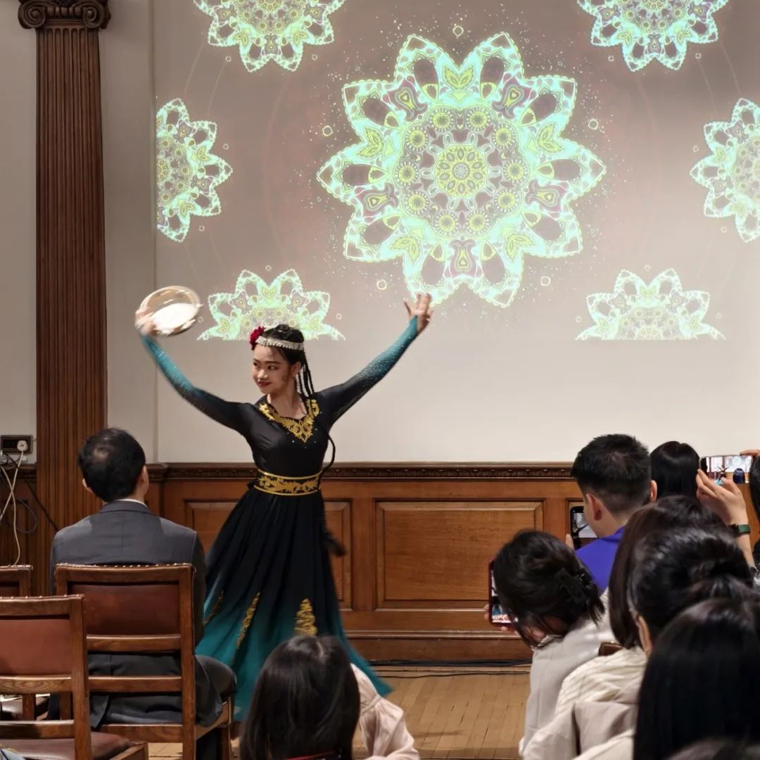 年会的文艺演出环节精彩纷呈。2007级艺术学院校友李梅里深情演绎《Yesterday》和《越人歌》,2017级公共卫生学院校友、牛津大学博士生陈媛媛带来的维吾尔族舞蹈,以优美的舞姿和浓郁的民族韵味将现场气氛推向高潮。