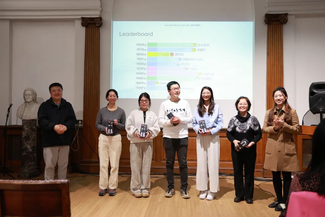 趣味猜谜游戏环节趣味盎然,校友们五人一组,通过手机互动答题,围绕北大日常生活、建筑和校园音乐等题目展开激烈角逐。经过多轮比拼,最终三支队伍脱颖而出。这场游戏不仅考验了校友对北大元素的记忆,更在互动中拉近了校友间的距离。