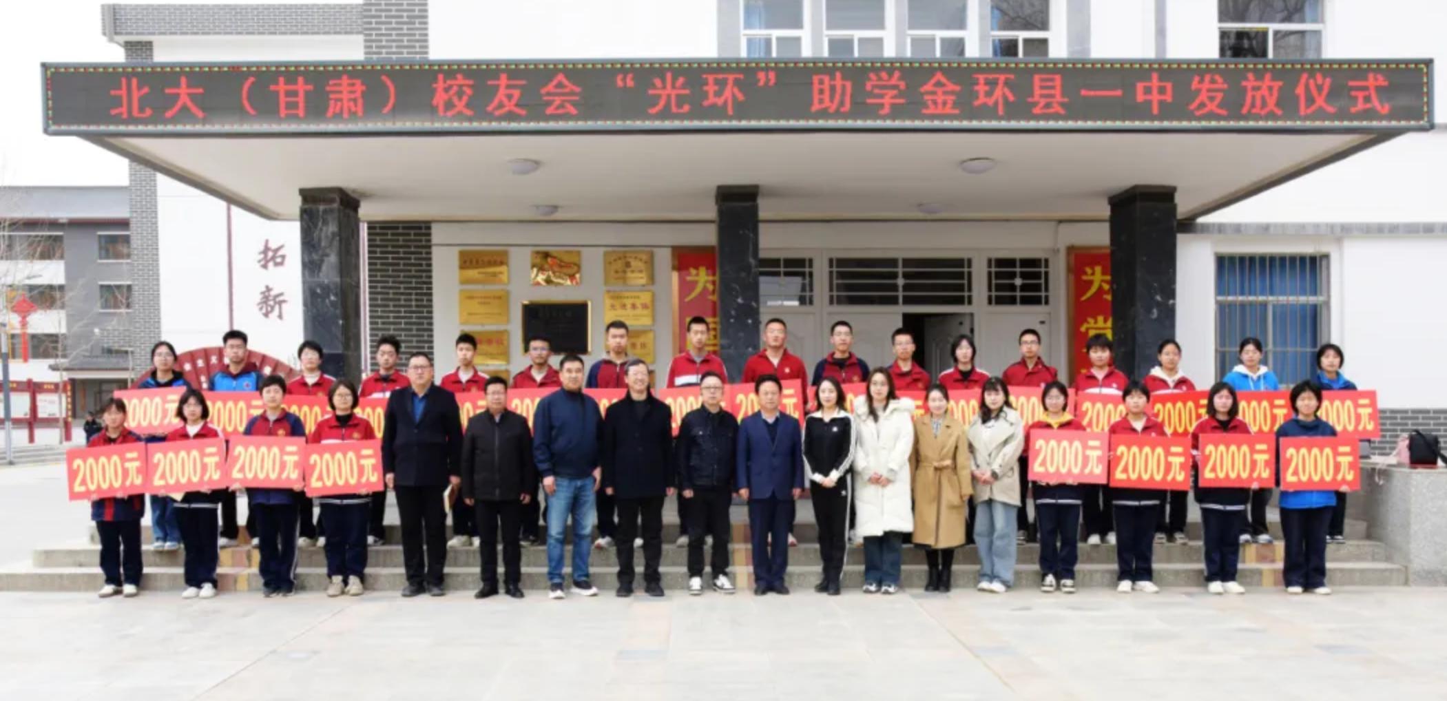 此次“光环”助学金,由窦霄捐赠5万元,资助25名同学。后续窦霄还计划资助环县一中毕业、品学兼优、家庭困难的在校大学生,助力他们顺利完成学业。捐赠仪式上,环县一中有关领导介绍了学校教育教学工作和受助学生选拔过程,并对北大校友的善举表达感谢。