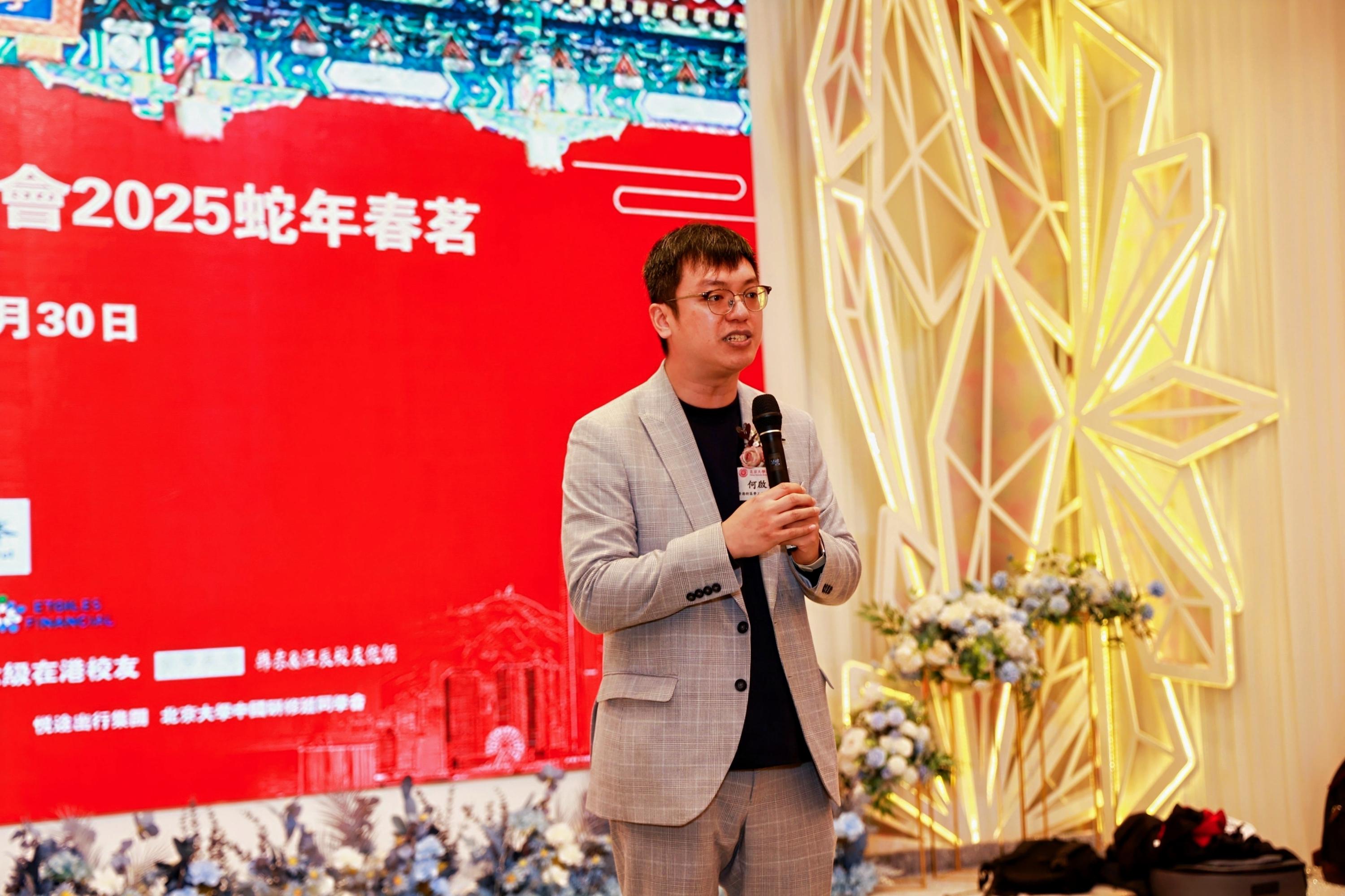 北京大学香港校友会会长刘祖繁致辞。他表示,作为中国近现代高等教育的发源地,北京大学始终以“敢为天下先”的革新精神,践行“教育救国、学术报国”的传统。这种将学术追求与国家命运紧密相连的使命与担当,已成为北大精神的基因。现今面临百年未有之大变局,香港处在由治及兴的重要节点上,科技创新和人才培养是香港未来发展的重要引擎和支柱,以人工智能为代表的新科技发展更是风起云涌,北京大学香港校友会将秉承母校精神,从科技创新、文化教育和人才发展等方面发挥香港和内地之间的平台与纽带作用,在香港经济社会的发展中进一步发挥北大人的家国情怀和责任担当。
