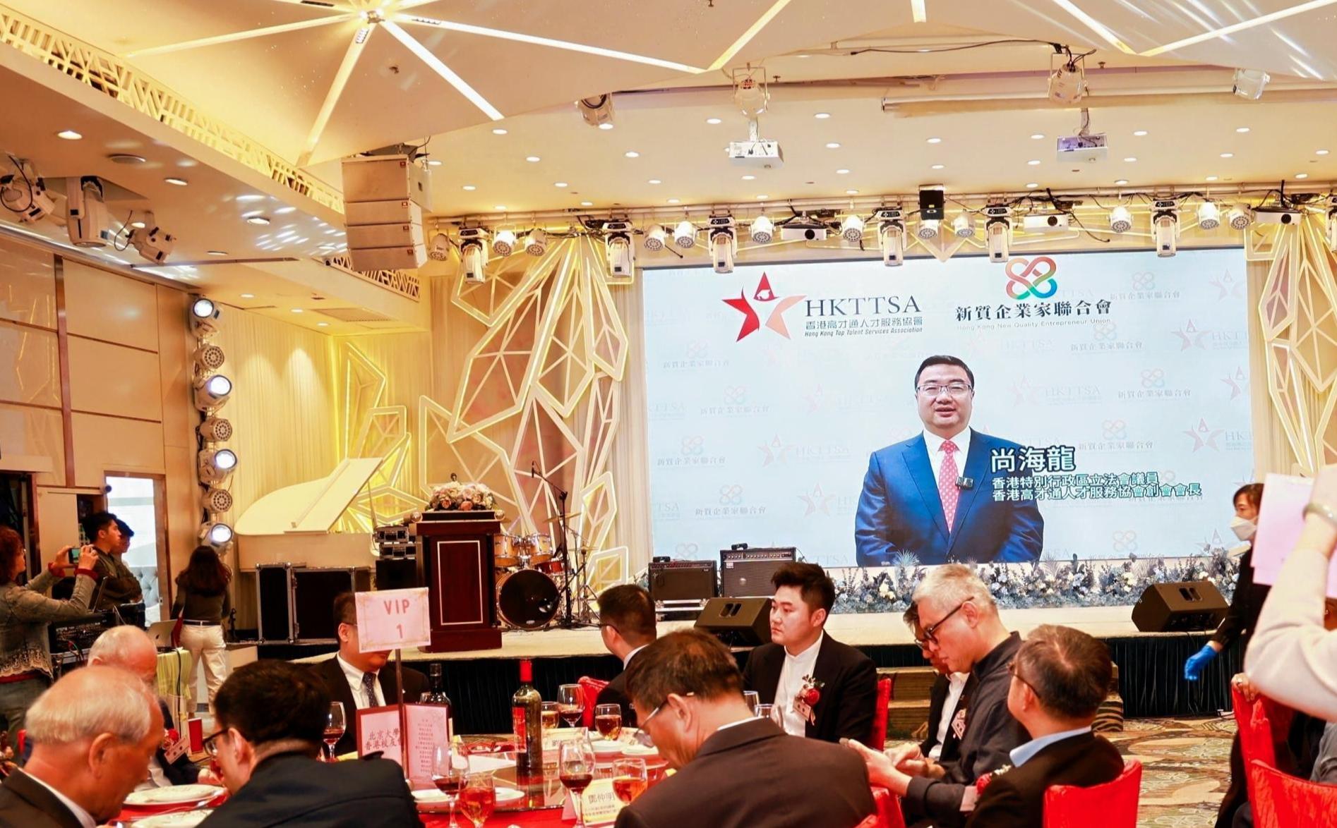 尚海龙在祝贺视频中表示,北京大学作为知名高等学府,以其深厚的学术文化积淀和思想自由、兼容并包的精神,培育了无数志存高远、心系国家的英才,为国家的现代化建设和社会进步作出了重要贡献。他期待香港高才通人才服务协会与北京大学香港校友会进一步合作,共同为国家发展和香港的繁荣稳定,培育更多的优秀人才。