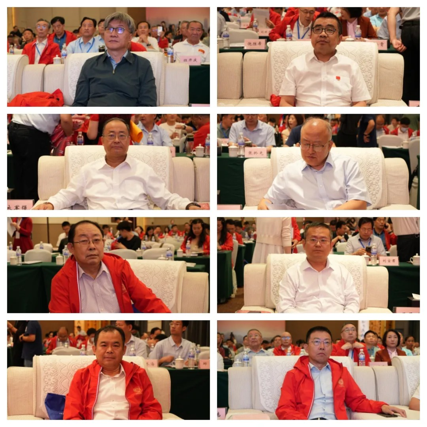 庆祝大会第七项,照张全家福。全体代表穿上校友会定制的红色冲锋衣于宴会厅门口合影,寓意校友会的发展和校友们的生活红红火火。