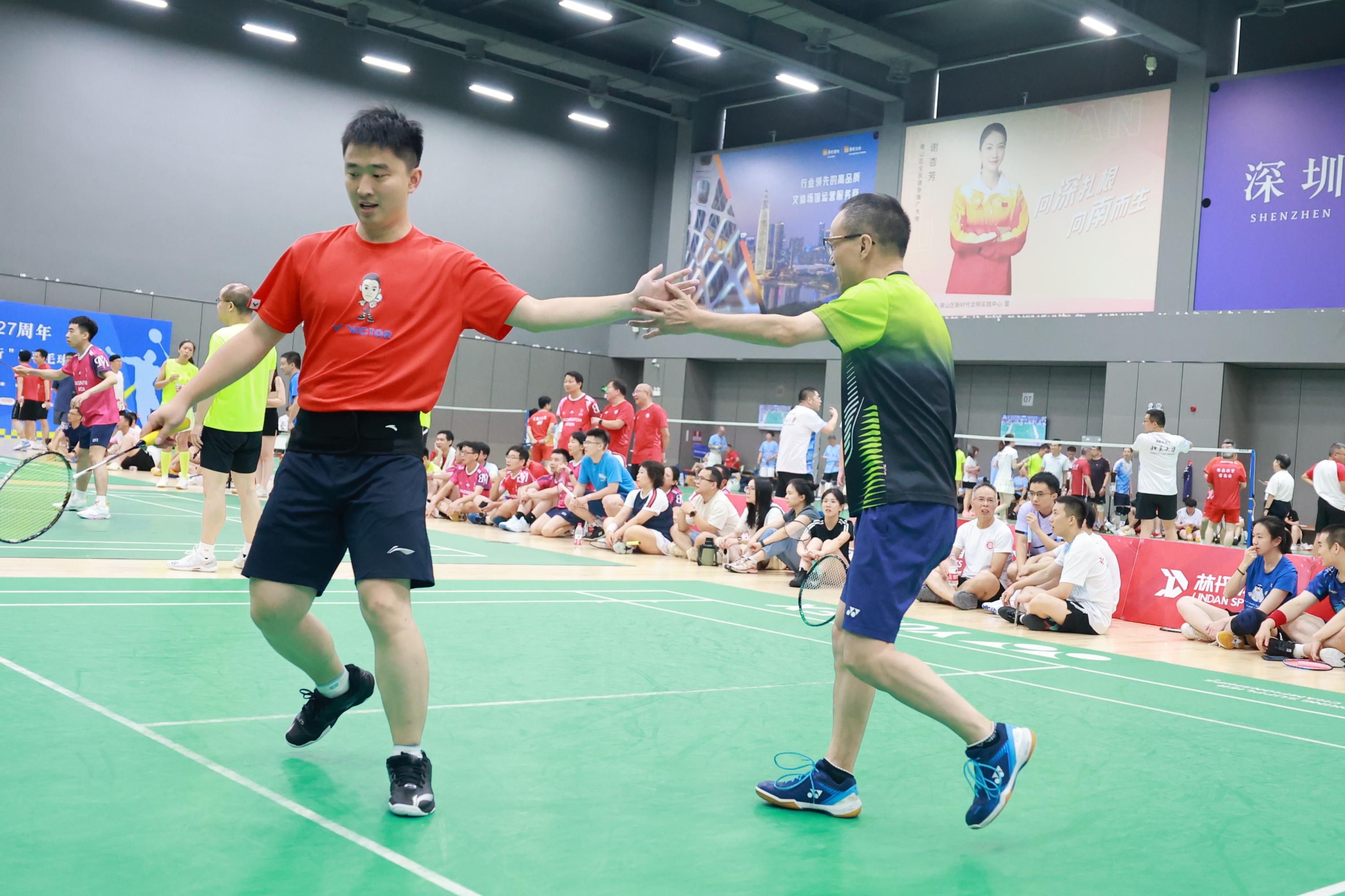 赛场之外,校友情谊亦在悄然升温。休息间隙,校友们畅谈昔日燕园往事,分享当下工作与生活,从战术布局聊到城市发展,笑声不断、情谊愈深。正如本次赛事所倡导的理念——这不仅是一场技艺的比拼,更是一场穿越时空、跨越地域的校友盛会。大家因羽毛球相聚于深圳,在一次次击球与配合中收获理解与尊重,在汗水与笑声中加深了校友情谊。