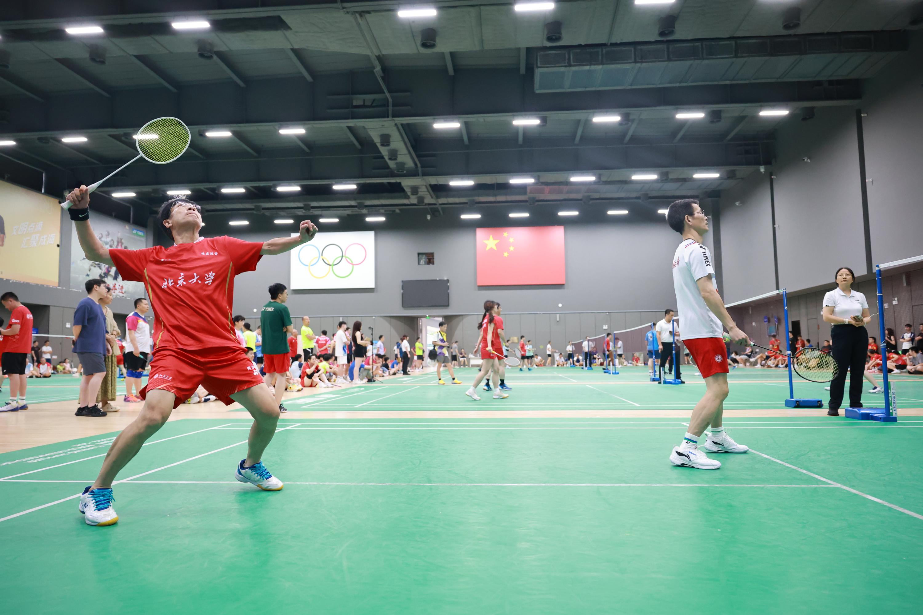 本届赛事设置混合团体赛与“110岁双打”两个项目。赛场上,校友们奋勇拼搏、默契配合,赢得现场观众阵阵喝彩。在刚柔并济的比拼中,他们将岁月的沉淀与运动热情融为一体,不仅展现了羽毛球运动的独特魅力,更书写了北大人坚持不懈、奋发向前的精神风貌。