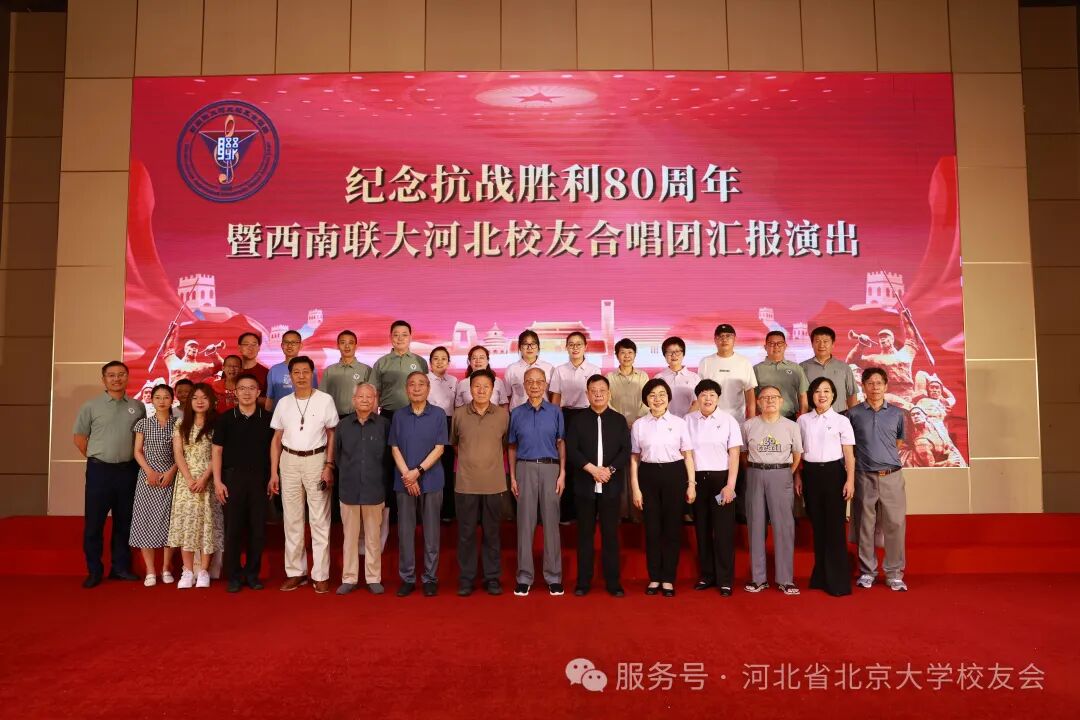 8月31日,北京大学、清华大学、南开大学三校河北校友合唱团在石家庄联合举办纪念中国人民抗日战争暨世界反法西斯战争胜利80周年汇报演出。三校校友及各界嘉宾230余人齐聚一堂,通过重温红色歌曲,铭记抗战历史,赓续西南联大精神。
