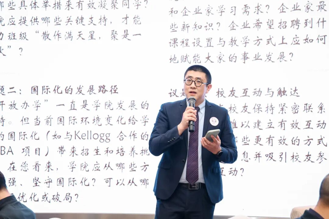 分组研讨环节,与会校友围绕班级凝聚力建设、校友互动与触达、国际化项目发展、课程需求与创新四个议题深入讨论。校友代表们积极建言:建议"建立跨年级互动机制进一步促进校友间深入交流与合作",“进一步拓宽校友向学院建言的渠道”,"加强经管课程与其它学科的交叉合作,培养复合型人才","国际化项目博采众长并更突出中国视角特色"等,为学院发展提供了宝贵参考。与会校友表示,将充分发挥联络人的桥梁作用,积极参与校友网络建设,共同助力学院发展。
