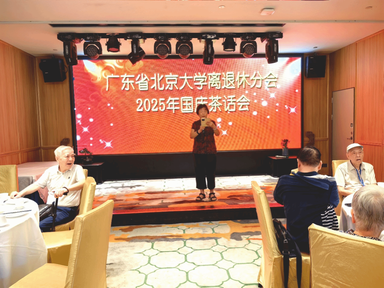 离退休分会会长孙崇赤主持活动,广东省北京大学校友会副秘书长张娜莉参会转达了校友会对老一辈校友的诚挚问候与美好祝福。