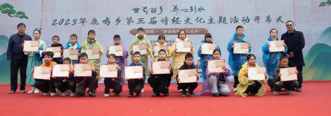 本次活动除以诗经为主题的诵读、舞蹈表演、趣味活动外,首次增设诗词创作大赛,吸引了鹿鸣乡及周边多所小学的60名学生参与。重庆市作协副主席何炬学等评委现场评选出一、二、三等奖共30名,并为创作诗歌的孩子们和他们的指导教师颁发荣誉证书和奖金。