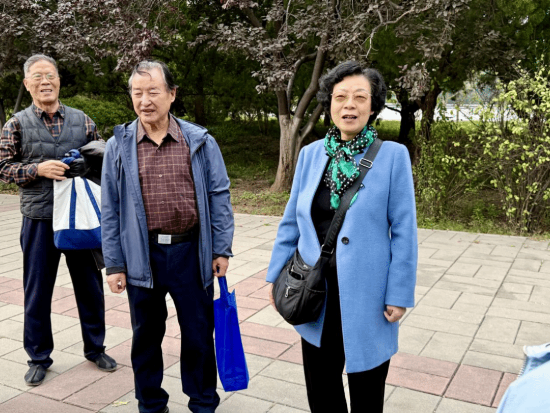 漫步途中,老校友们的思绪也仿佛穿越回了燕园的青春岁月。图书馆里伏案研读的身影、教室中与同窗争辩的场景,都化作津津乐道的话题;而退休后的生活趣事与含饴弄孙的温馨日常,也在谈笑间引来阵阵会心的笑声与感慨。当年风华正茂的少年,如今虽已两鬓染霜,但那段共度的北大时光,始终是心底最珍贵的宝藏。登高远眺,美景尽收眼底,这群白发学子眼中闪烁的,依然是如少年时代那般,对生活不减的憧憬与热爱。
