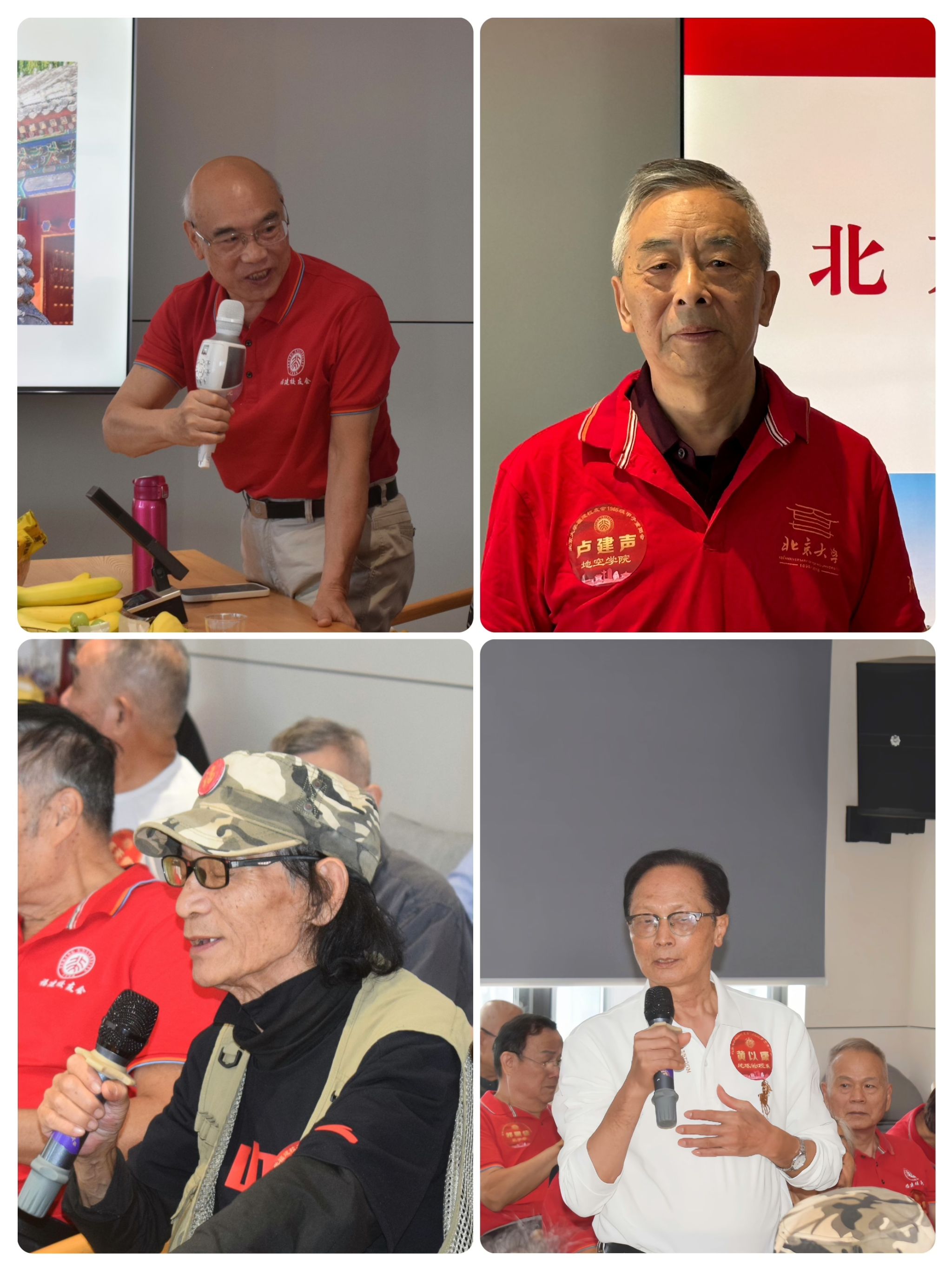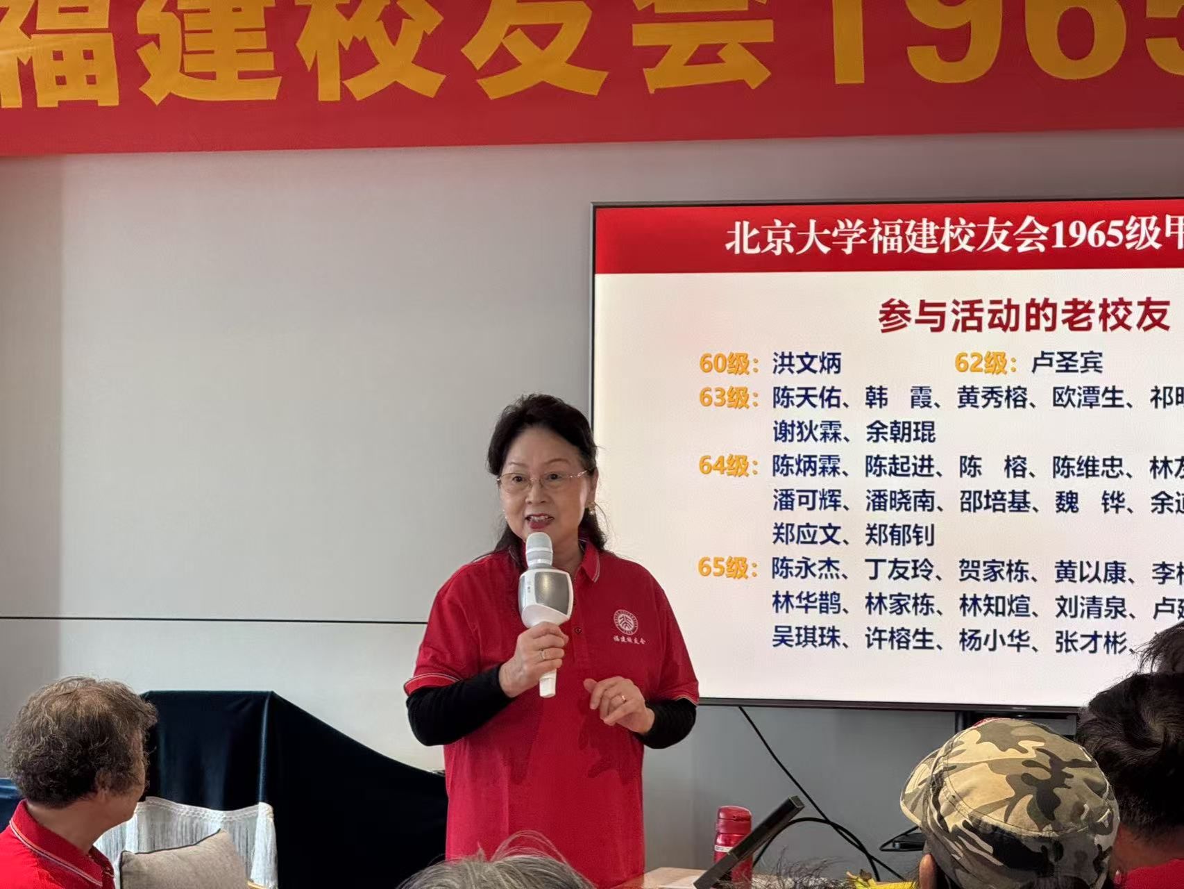 许榕生学长忆及当年因独特的解题思路被北大破格录取,眉宇间依然闪烁着少年才俊的光芒,他讲述自己在中国科学院工作期间,开通中国第一条国际互联网专线的历史性贡献,话语中带着那个年代知识分子的自豪与担当。卢建声学长动情地说,北大这块“金字招牌”,是他一生奋斗不止的动力源泉,激励他在教学岗位上带领学生投身科技创新的浪潮。刘清泉学长则分享了退休后“乐山乐水”、寄情自然的淡泊心境。专程从重庆飞回的黄以康学长,风趣地分享旅居经验,邀约大家共赴一场“候鸟式”的退休生活。自幼在北京长大的张才彬学长,则讲述了自己辗转多地、最终为爱妻定居福州的浪漫故事,感叹校友会如家一般的温暖。从厦门赶来的郑郁钊学姐分享了身为北大人的骄傲,以及在人生关口得到校友无私帮助的感人经历,这份北大情缘甚至传承给了孙辈,激励后代追求卓越。陈永杰学长追忆了入学即赴昌平参加“社教”的特殊经历,带领大家重温了那个特殊年代的集体记忆。主持人丁友玲学姐亦分享了自己扎根基层、发明“鲎试剂”荣获国家大奖,后又毅然回国创业的传奇人生。最后,“老五届”代表欧潭生学长对1965级校友致以祝贺,盛赞他们是幸运的一代,在各行各业成就斐然,为母校增光添彩。