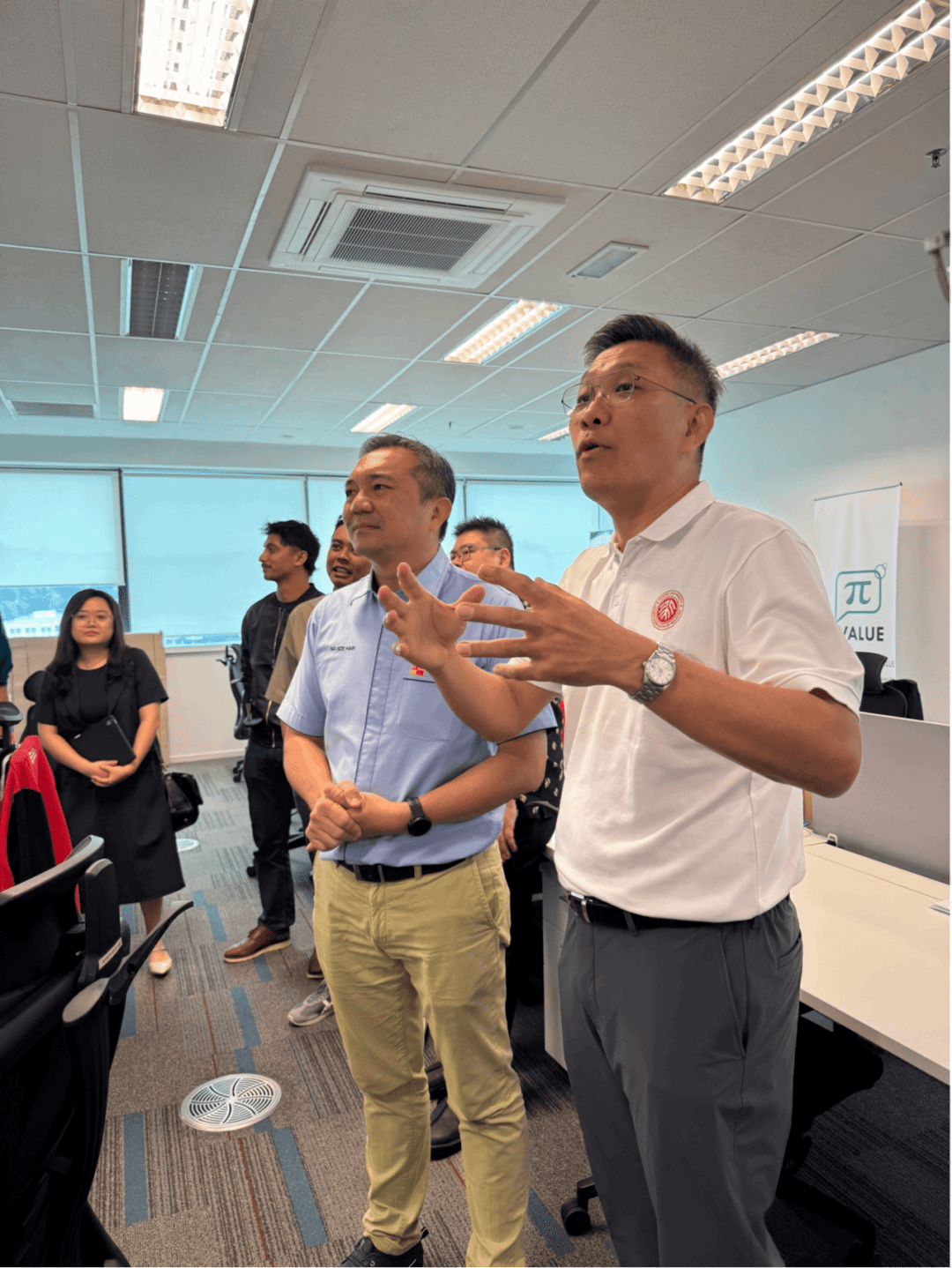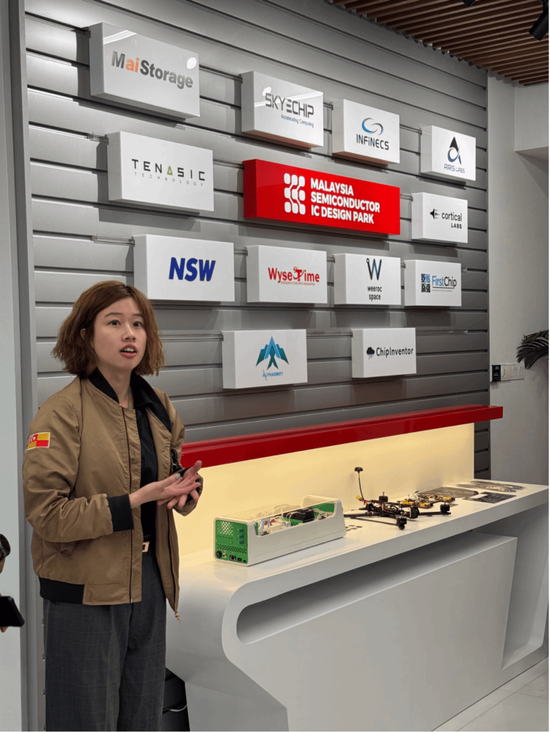 随后,雪兰莪资讯科技与数位经济机构(SIDEC)经理Lau Wei Ping引导代表团实地参观了IC设计园的现代化办公空间。她详细讲解了园区的发展目标、为入驻企业提供的优惠政策,以及SIDEC在吸引国内外半导体产业投资方面所付出的努力。Lau Wei Ping的介绍让参访团成员对雪州政府在推动高科技产业发展方面的政策与计划有了更具体、更深刻的认识。