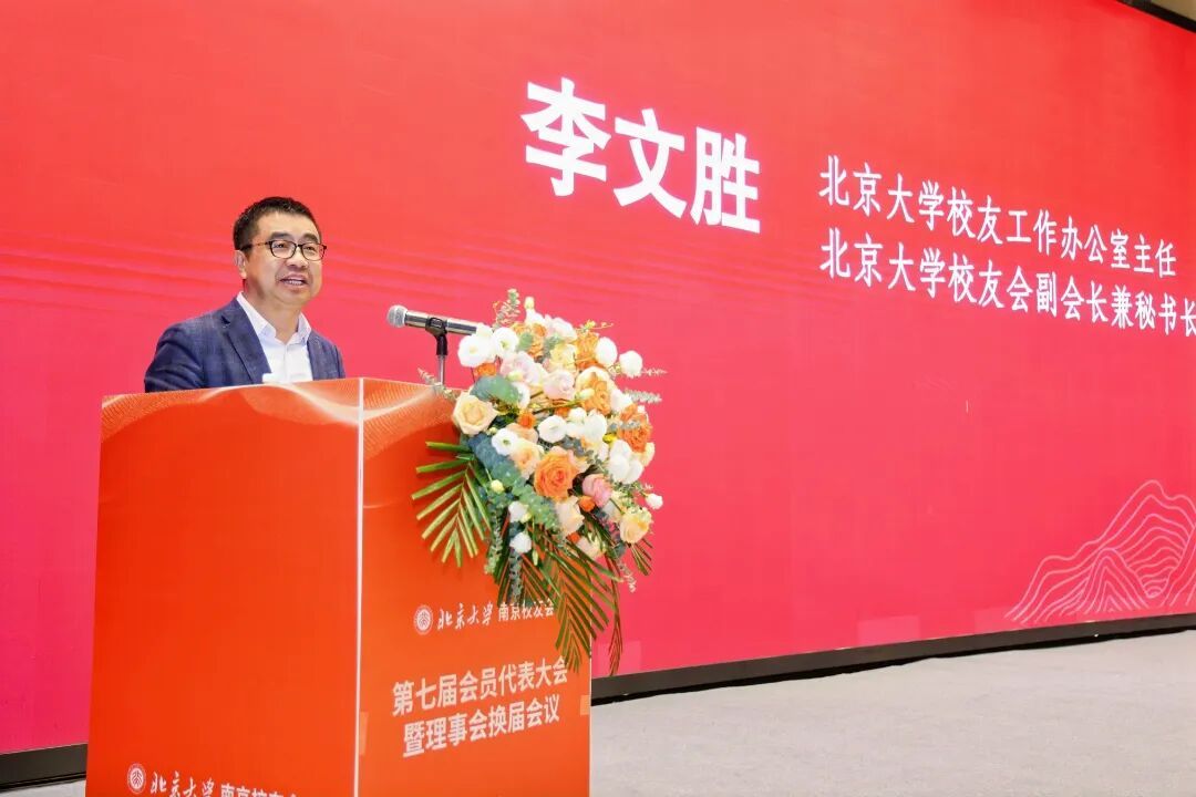 李文胜在致辞中肯定了北京大学南京校友会自1986年成立以来,团结校友、服务地方发展所取得的丰硕成果。面向未来,他对校友会提出期许:建强“校友之家”,提升服务温度与黏性;搭建“合作之桥”,促进北大智力优势与南京产业深度融合;共书“奋进之篇”,鼓励校友在服务国家战略中彰显担当,续写个人成长与区域振兴交相辉映的新篇章。