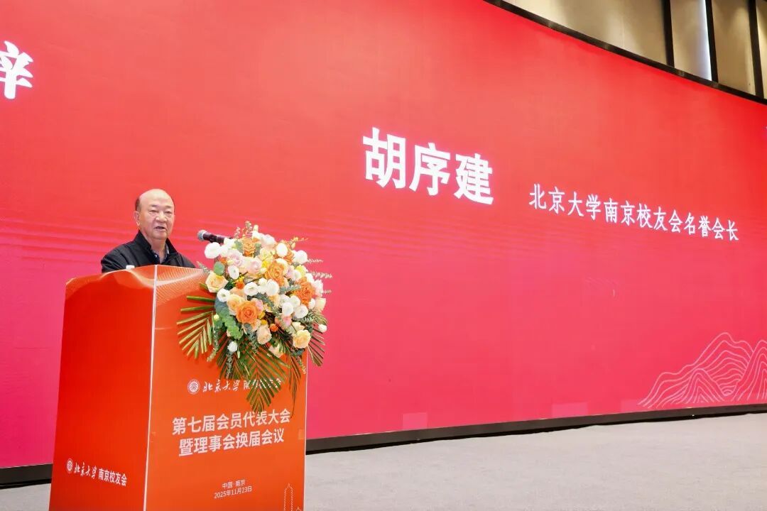 北京大学南京校友会名誉会长胡序建致辞。他表示,南京这座城市所展现出的勃勃生机与无限潜力,为在此工作的人们特别是青年才俊,提供了施展才华的舞台。他结合自身经历,阐述了校友会作为精神家园和纽带平台的重要性,并寄语校友会永葆活力。