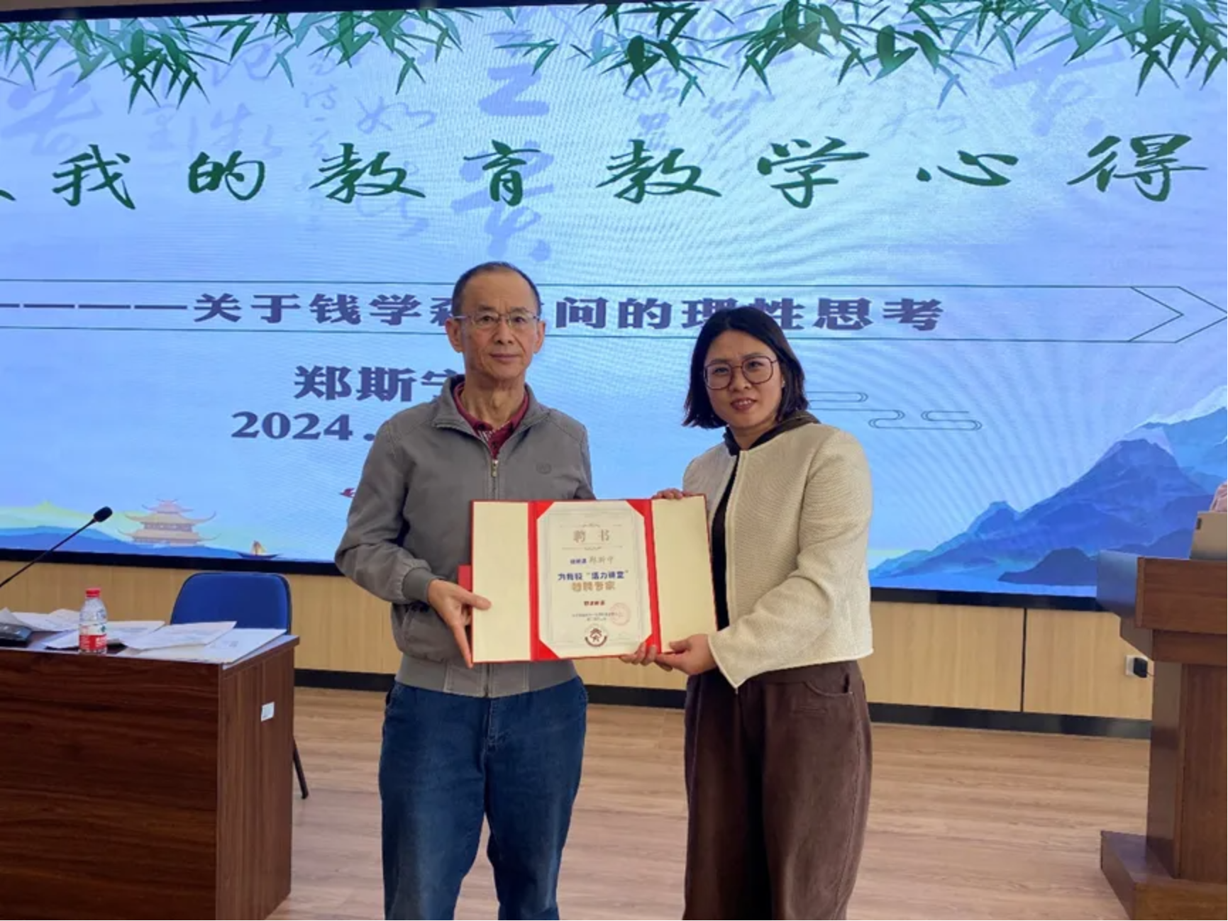 讲座最后,高新区第四学校向郑斯宁教授颁发了学校“活力课堂”特聘专家证书,期待郑教授的加入为学校的事业发展注入新的活力,使学校的教育教学水平得到进一步的提升。