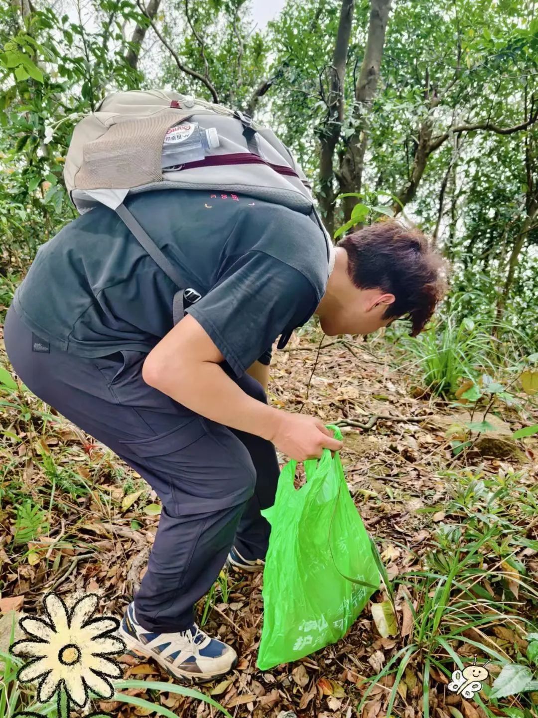 当日早上9点,北大校友共30多人齐聚梧桐山脚下,从登云道出发,一路攀爬一路捡拾被丢弃垃圾。参加本次活动的校友们来自各行业各年级,有工作多年的师兄师姐,也有刚入学的师弟师妹;有企业合伙人、创业者,也有师兄带着自己的孩子一起参与,2000届有机化学系校友谢桂阳更是从惠州赶赴深圳参加本次活动,这既是环保理念的传承,也是北大的人文精神的传承。