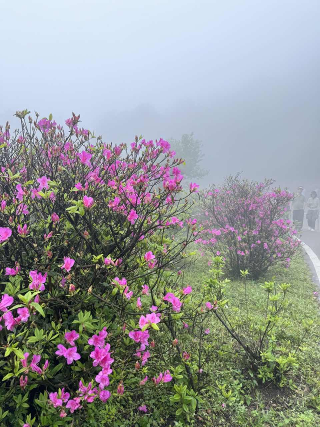 午后,校友们登顶梧桐山好汉坡。好汉坡以其陡峭的石阶和险峻的山路而闻名,站在好汉坡的山脚石阶路映入眼帘,仿佛两条巨龙蜿蜒盘旋而上。一眼望去,三月的梧桐山杜鹃花盛开,堪称是大自然的绝美馈赠,校友们在城市繁忙而喧嚣的生活之外体验大自然的静谧,净化自己的心灵。是日,梧桐山烟雾缭绕,杜鹃灿烂盛开,置身其中仿佛人间仙境!在登顶途中,校友们互相鼓励、互相帮助,共同克服难关,最终一起登顶的经验,更是难能可贵。