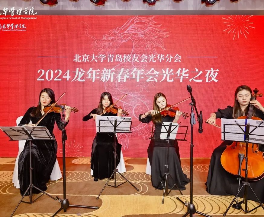 光华之夜晚宴在青岛校友会光华分会会长张吉成的致辞中拉开序幕。张吉成首先代表校友会向大家致以新春问候,并向所有关心和支持校友会发展的嘉宾、校友们表达感谢。他表示,新年新气象,青岛校友会光华分会将继续牢记母校嘱托,积极服务校友、服务社会,做好母校与校友间的沟通桥梁。随后,弦乐四重奏、舞蹈《不如就来青岛》、乐队歌曲串烧等节目将晚宴气氛烘托至高潮,一轮又一轮的惊喜抽奖更为现场带来了激情与掌声。
